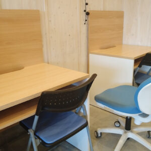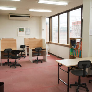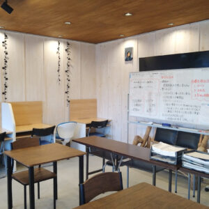 建物の1階には「竹田カフェ」を併設し、生徒たちは気軽に立ち寄って学習できる空間として活用しています。塾という枠を超えた、地域に開かれた場づくりを心がけており、勉強だけでなく、友達と語らう場所としても親しまれています。