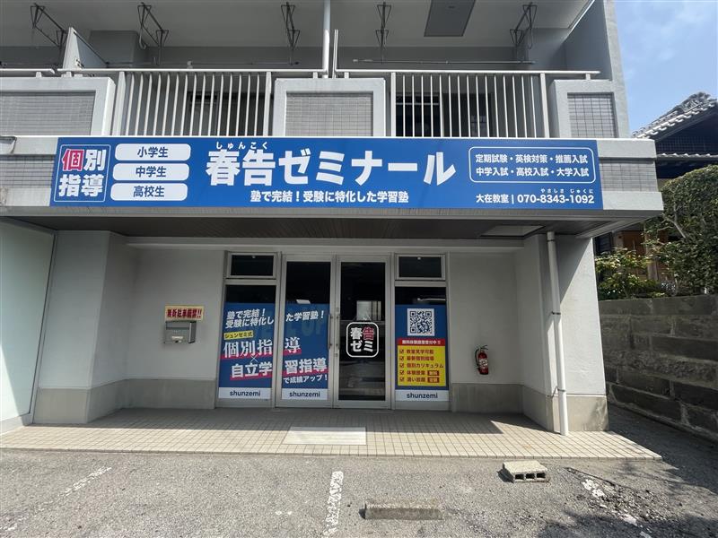 2026年4月に開校した春告ゼミナール大在教室です。 小学生・中学生・高校生を対象に、受験に特化した指導を行っている学習塾です。 志望校がまだ決まっていない方もご安心ください。 定期的な進路面談・学習面談を通して、生徒一人ひとりの将来像を一緒に考えていきます。単に成績を上げるだけでなく、「その子の人生に寄り添う塾」であることを大切にしています。 また、大在中学校・大東中学校に対応した定期テスト対策カリキュラムを準備しております。学校ごとの出題傾向や授業進度に合わせた指導で、内申点アップを目指します。 勉強に対して漠然と不安を抱えている方も、通ううちに「勉強の楽しさ」に気づいていただけるはずです。 近隣の 大在小学校・坂ノ市小学校・丹生小学校・大在中学校・大東中学校・鶴崎高校・大分東高校・情報科学高校などの生徒様に通いやすい立地です。